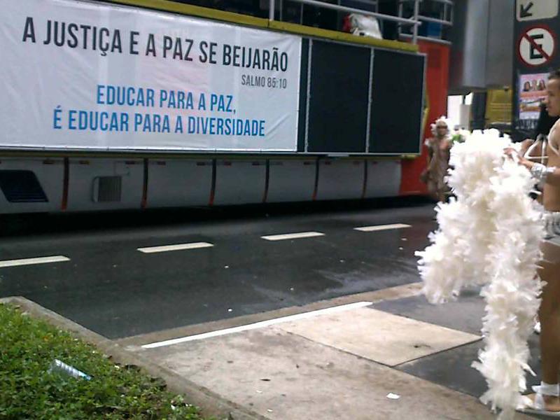 Integrantes da Igreja Cristã Evangelho para Todos distribuíam panfletos com a frase: "Para Deus somos todos iguais. Amor não é pecado".