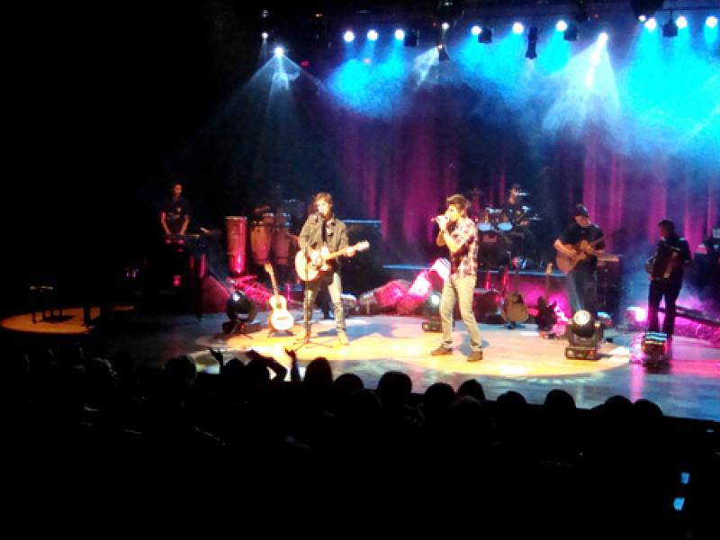 Entre as cerca de 450 pessoas presentes no Teatro Ralino Zambotto, as amigas Isabela Serena Benedetti, 16 e Maria Eduarda Sarteniel, 15, chamavam atenção pela empolgação. Elas vieram de Jundiaí especialmente para o show especial da dupla. “Conhecemos os meninos por acaso em Jundiaí, quando eles estavam tocando em um bar. Desde este dia viramos fãs e os acompanhamos onde quer que eles toquem”, contou Isabela.