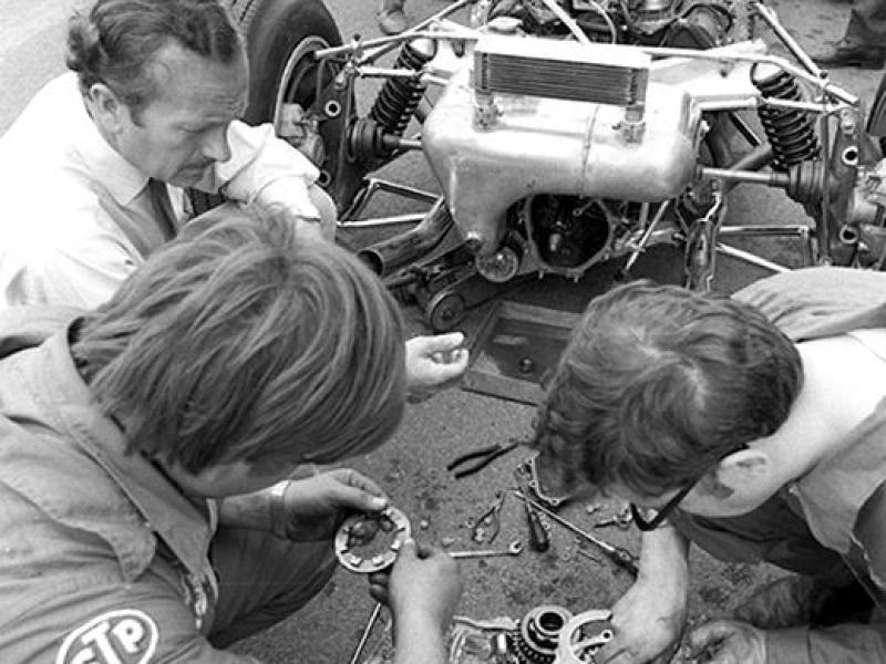 Clemont-Ferrand 1973, mecânicos dão duro no carro de Emerson. Com certeza não estavam mexendo no mapeamento do motor.