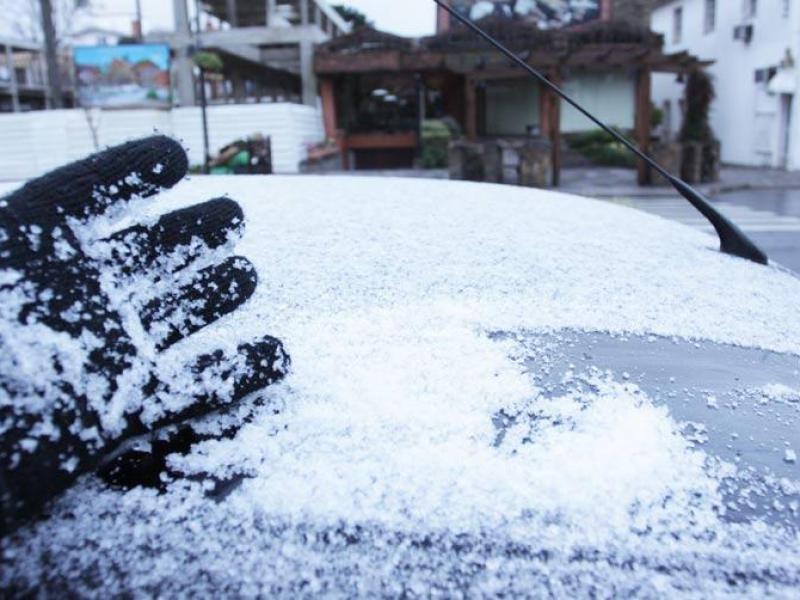 Já em Garibaldi, pequenos flocos de neve misturados com chuva congelada foi registrada por volta das 10h.