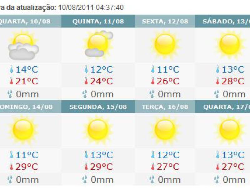 Acompanhe as previsões do tempo para os próximos 8 dias( temperatura mínima e máxima). Clique na foto abaixo e veja