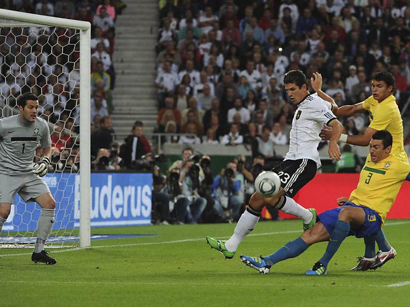 O início da partida foi totalmente dominado pelos anfitriões. A pressão era tanta que mais parecia um treino de ataque contra defesa. Com 5min, o camisa 8 alemão driblou André Santos e obrigou Júlio César a grande defesa.