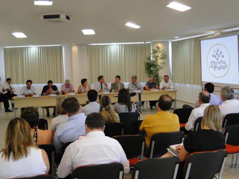 Na manhã desta terça-feira, 29, Itatiba sediou reunião do Consórcio Turístico do Circuito das Frutas, do qual o Prefeito João Fattori é o atual presidente. Prefeitos e representantes de oito cidades do Circuito participaram do encontro, entre 9h e 11h, para discutirem a criação de uma sede para o Circuito, analisar o momento estratégico da Copa do Mundo e apresentar as atividades de 2009 e 2010