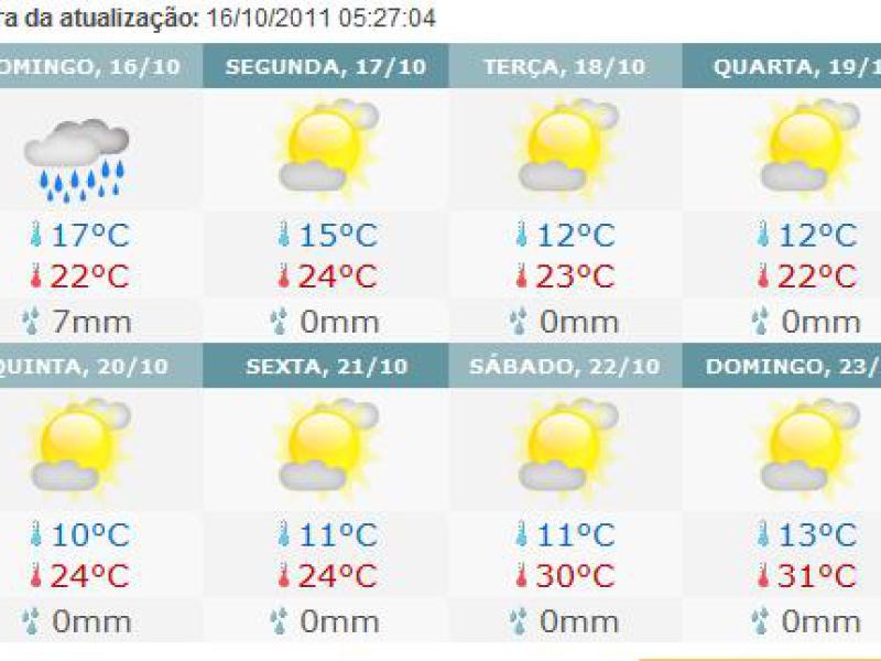 Acompanhe as previsões do tempo para os próximos 8 dias. Clique na foto abaixo e veja
