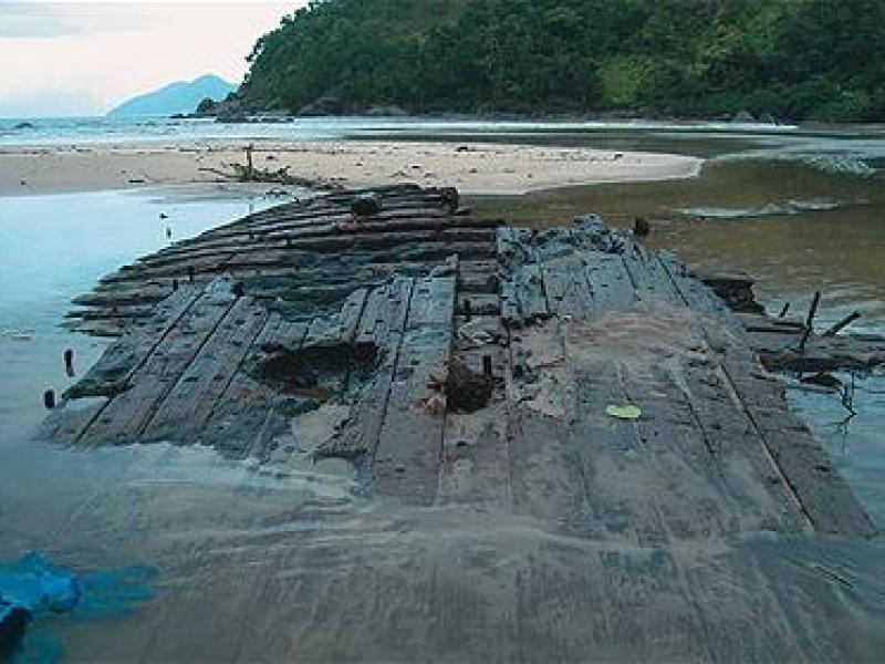 A lenda de que havia um antigo navio soterrado na praia de Castelhanos, em Ilhabela (litoral norte de SP), sempre foi contada por moradores, mas foi só em abril que, após uma enxurrada, uma carcaça de madeira de 15 metros surgiu na areia