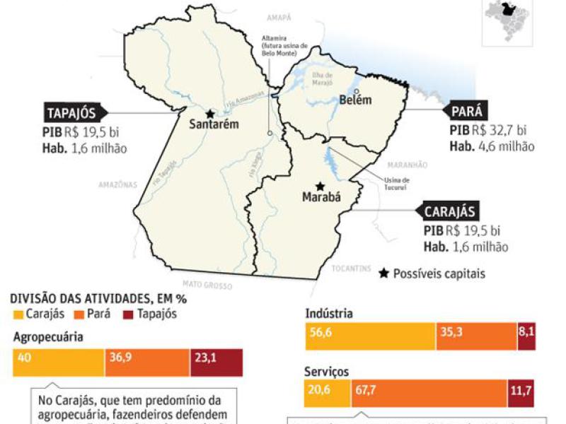 Contra ambos estão empresários e políticos da região metropolitana de Belém, que não aceitam perder 86% da área e 44% do PIB. (Fonte: Folha.com)