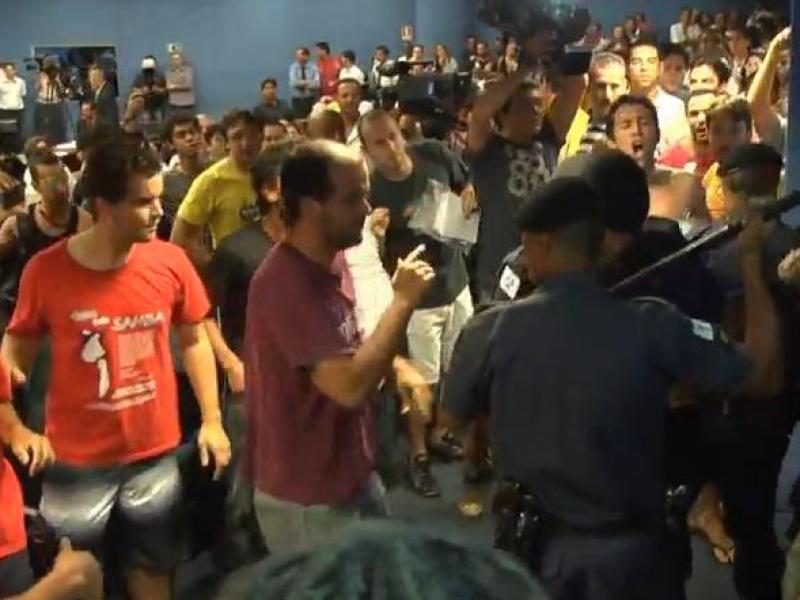 O plenário ficou lotado, com cerca de 200 pessoas para a sessão, a penúltima do ano. Com cartazes, os manifestantes lembraram o reajuste do salário mínimo para o próximo ano, de 14,26%, além de outras frases de protesto contra aumento recebido pelos parlamentares. Ao fim da sessão, alguns manifestantes jogaram ovos nos parlamentares. A Guarda Municipal reagiu e usou a pistola que dá choque e gás de pimenta para reprimir os protestos.