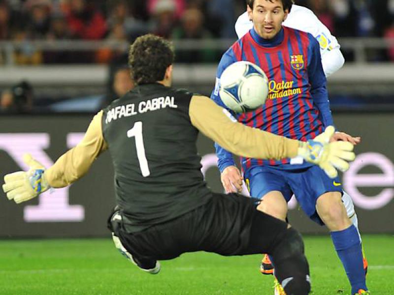 Contra-ataque do Barcelona. Daniel Alves acionou Messi na área, o argentino driblou Rafael e tocou para o gol vazio. Barcelona 4 x 0 Santos aos 37min.