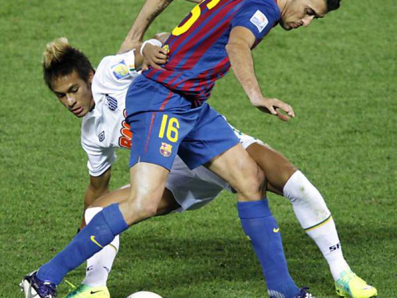 Bastou a bola rolar para que o encontro, decantado como o das melhores equipes do mundo, fosse desmistificado. O Barcelona, com sua incansável posse de bola, dominou o jogo desde o início. O Santos entrou claramente para contra-atacar. E teve ótima oportunidade aos 7min, quando saiu em velocidade e a bola sobrou para Neymar. Mas o craque santista penteou a bola na entrada da área e foi desarmado.