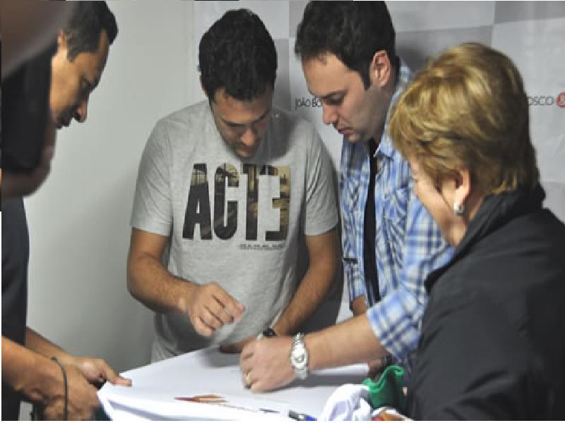 Na foto, João Bosco & Vinícius autografam camiseta da Campanha do Agasalho que será lançada nesta quarta-feira. Esta camiseta, e outras também autografadas por demais atrações da 9ª Festa do Caqui & Cia e apoiadores da campanha do ano passado, serão sorteadas entre as pessoas que trocaram Ingressos Solidários por alimentos na festa. (Fonte:ACPMI)