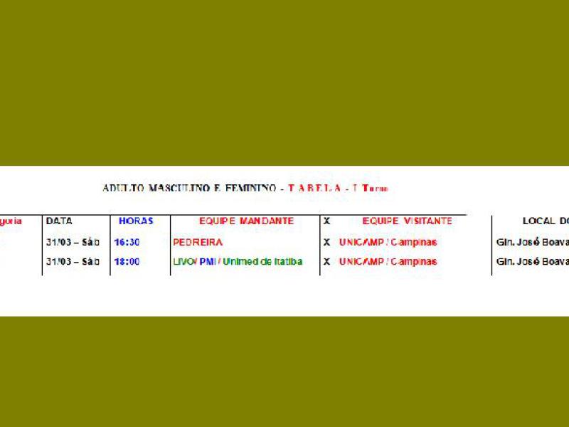 A rodada de abertura acontecerá no Ginásio Municipal de Esportes ‘José Boava’ em Itatiba, com a realização de jogos pela categoria Adulto e também disputas do 1º Festival do Circuito Regional de Voleibol Adaptado.