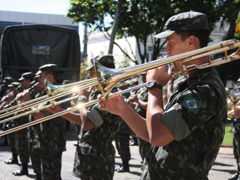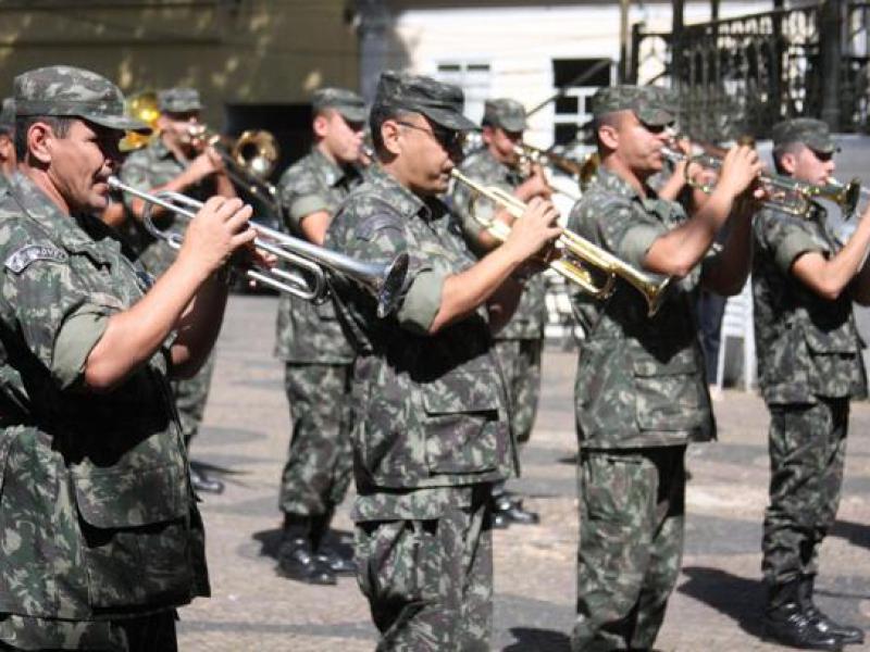 Na manhã desta quarta-feira, dia 9 de maio, a Praça da Bandeira foi palco da apresentação da banda do 5º Batalhão de Infantaria Leve do Exército