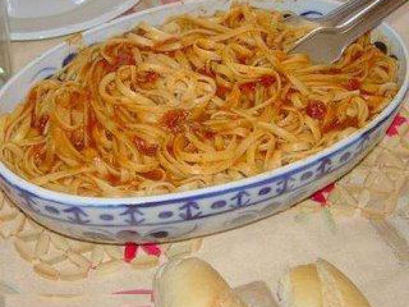 Que tal uma bela macarronada com frango frito?