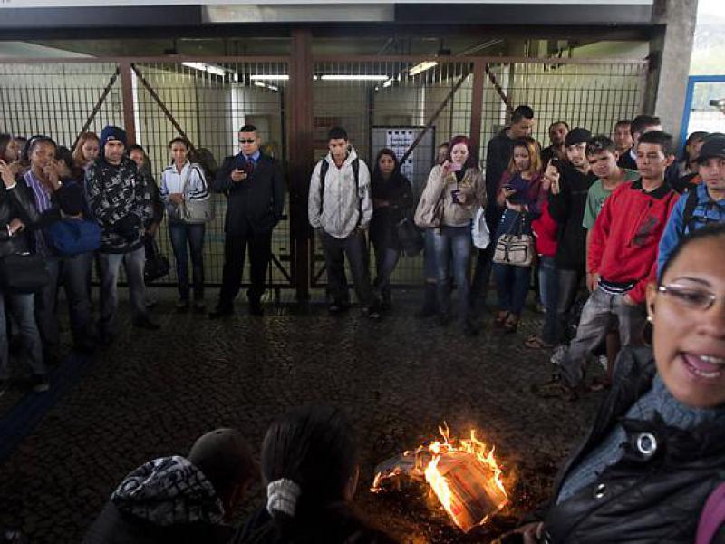 Outro protesto foi realizado na frente da estação Jabaquara da linha 1-azul, que amanheceu fechada. Passageiros juntaram uma pilha de papelão e jornais e colocaram fogo no material. Um grupo tentou forçar as portas da estação.