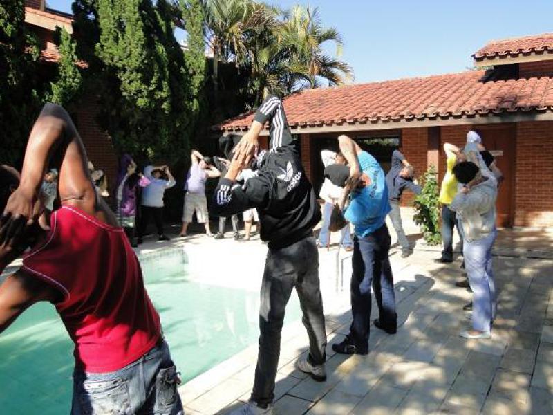 A educadora física Diane Ciaparin fez o público que aguardava no Ambulatório Central de Especialidades se movimentar. "No início, o público estava meio tímido, mas aos poucos o pessoal foi aderindo e se divertiu com exercícios de alongamento", contou. A ação aconteceu em dois horários. O CAPS AD fez um intervalo na sua rotina para marcar presença no Dia do Desafio. Funcionários e pacientes se uniram em uma série de exercícios ao redor da piscina.