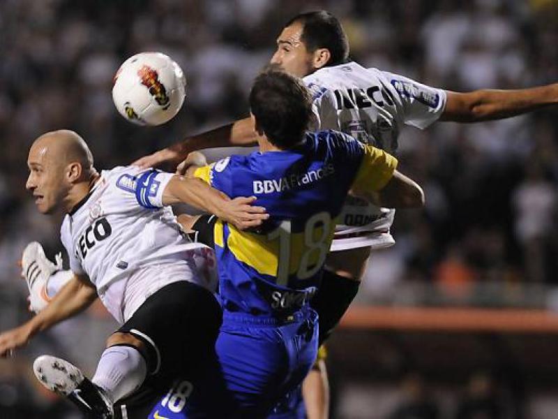 A partida desta noite começou quente e nervosa. Um dos primeiros lances foi uma confusão entre o atacante Mouche, do Boca, e o zagueiro Chicão, do Corinthians, depois de uma disputa de bola. Os dois levaram o cartão amarelo. Depois os ânimos se acalmaram.
