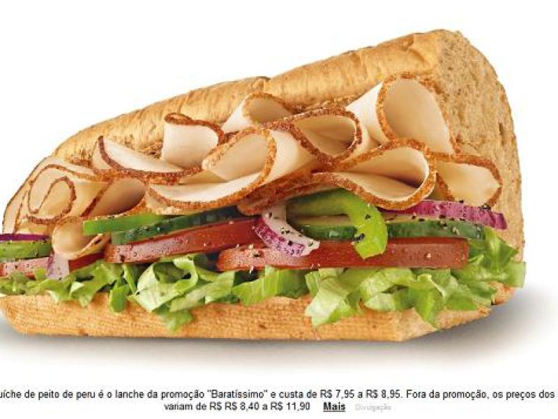 Todos os dias, um sanduíche do Subway custa R$ 5,95 nas lojas da rede, exceto na região Norte do país, onde o “barato do dia” custa R$ 6,95. Já o “baratíssimo” é um lanche fixo, que custa de R$ 7,95 a R$ 8,95, dependendo do local. No momento, o lanche dessa promoção é o de peito de peru. Fora de oferta, os sanduíches têm preços que variam de R$ 8,40 a R$ 11,90 em todo o Brasil.