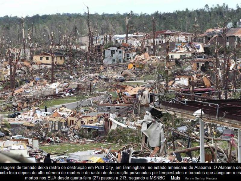 Alabama, com 162 mortes e muita destruição, é estado mais atingido. Presidente Obama deve visitar a região afetada nesta sexta-feira (29)