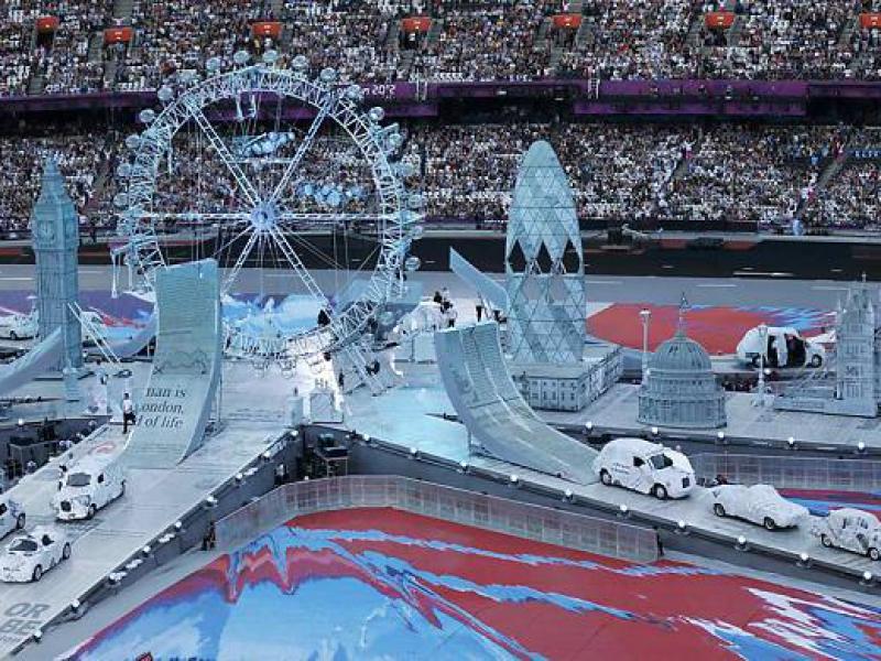 Executou-se o hino do Reino Unido, enquanto os atores sacudiam as bandeiras do país. Depois começaram as apresentações musicais, como a tradicional banda Madness, que desfilou na carroceria de um caminhão cantando a música “Our House”. Emeli Sandé subiu ao palco duas vezes. A banda Pet Shop Boys, a música ‘A Day in Life’, dos Beatles, e Batman e Robin fizeram parte do repertório.