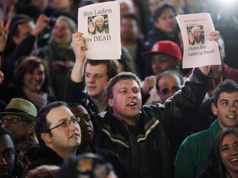 Enquanto Obama fazia seu pronunciamento em rede nacional, centenas de americanos comemoravam em frente à Casa Branca, na noite deste domingo [horário local]. Gritando o nome dos Estados Unidos, alguns manifestantes exibiam bandeiras americanas num ato espontâneo diante da sede da presidência para comemorar a morte do chefe da Al Qaeda. "Nunca senti tamanha emoção", declarou John Kelley, estudante de 19 anos. "É algo que nós esperávamos há muito tempo".