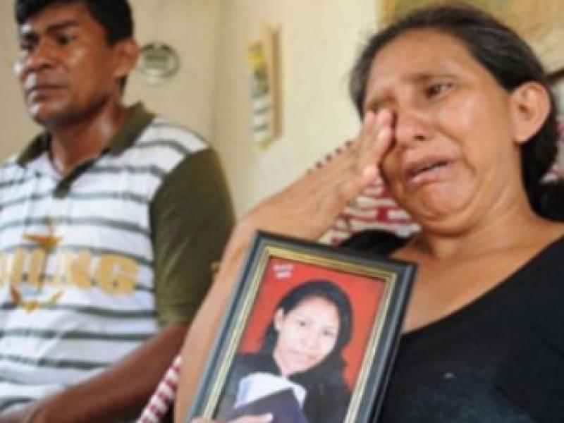 Mãe chora com o retrato de filha que teria sido levada por quadrilha que explora o tráfico de pessoas no AM