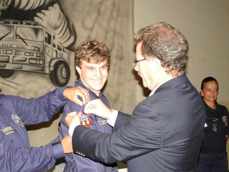 Após a entrega dos certificados aos Bombeiros Juvenis a cerimônia encerrou-se com a entrega de um brasão aos jovens José Pedro Leite, Paloma Bianchini, Maytê Hércules Mantovani e Vanda Cardoso Tibães. Por se destacarem no Programa Bombeiro Juvenil e por demonstrarem aptidão o quarteto pioneiro atuará como estagiários do Departamento de Bombeiros, a partir de fevereiro de 2013 durante um ano.