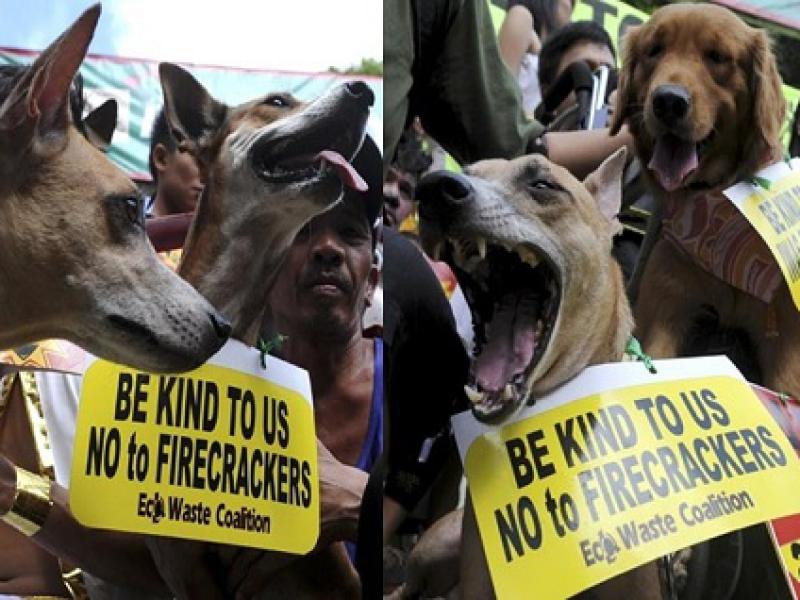 Grupos de defesa dos direitos dos animais fizeram neste sábado (30), uma manifestação contra o uso de rojões nas comemorações do ano novo nas Filipinas