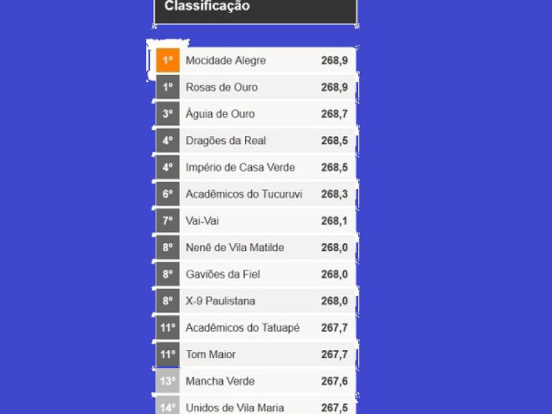 A escola de samba Mocidade Alegre conquistou o bicampeonato do Carnaval do Grupo Especial de São Paulo, confira os detalhes: