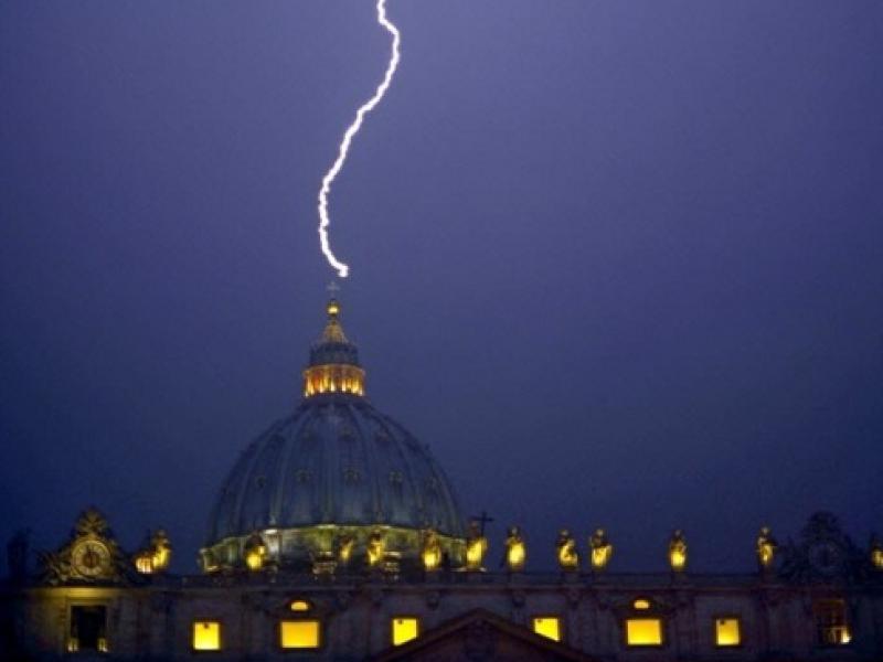 Foto manchete: Raio atinge a basílica de São Pedro no mesmo dia em que Bento 16 anunciou a renúncia
