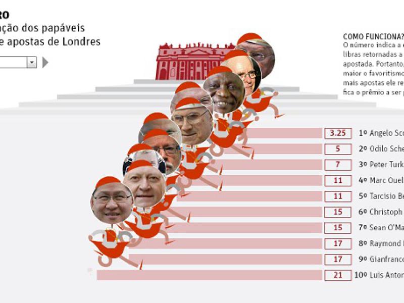Iniciado 12 dias após a renúncia de Bento 16, o processo de escolha do novo papa é realizada por 115 cardeais, sendo cinco brasileiros: dom Raymundo Damasceno Assis, 76; dom Odilo Scherer, 63; dom Geraldo Majella Agnelo, 79; dom Cláudio Hummes, 78; e dom João Braz de Aviz, 64.