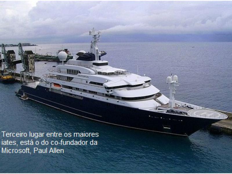 Em terceiro lugar entre os maiores iates, está o do co-fundador da Microsoft, Paul Allen, que tem 414 pés (126,19 metros) e foi avaliado em US$ 200 milhões (R$ 397 milhões) em 2012. (Fonte: Juliana Américo Lourenço da Silva/InfoMoney)