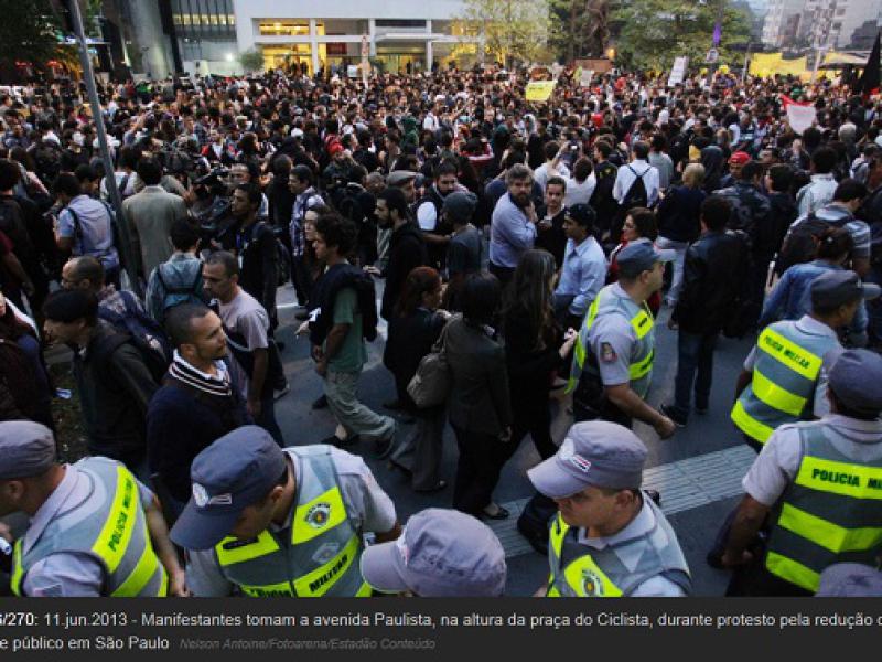 As lideranças do movimento e os comandantes da PM tentavam chegar a um acordo quando o conflito teve início. A PM usou bombas de gás lacrimogêneo e balas de borracha contra os ativistas, que responderam atirando objetos. A partir de então, o protesto se dispersou por várias ruas, com os policiais perseguindo os manifestantes. Cerca de 5.000 pessoas participam do ato, segundo a PM.