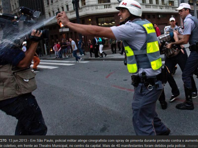 Policiais militares e manifestantes entraram em confronto por volta de 19h10 desta quinta-feira (13) na rua da Consolação, no centro da capital paulista, durante ato contra o aumento da passagem em São Paulo