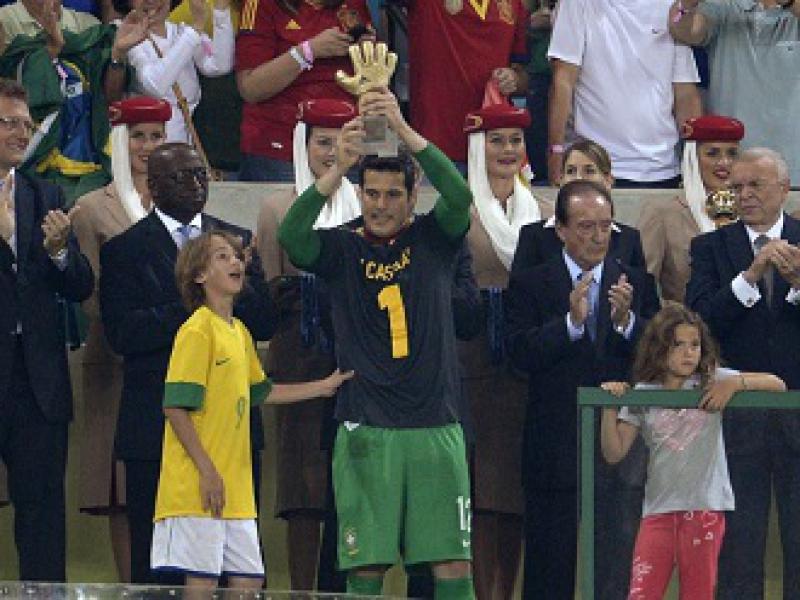 A Espanha parecia ter uma chance de mexer com o jogo aos 9min, quando Marcelo cometeu pênalti infantil em Jesus Navas. Julio Cesar acertou o canto escolhido pelo zagueiro Sergio Ramos, mas não precisou nem esticar a mão, bastou ver a bola sair pela linha de fundo em uma péssima cobrança.