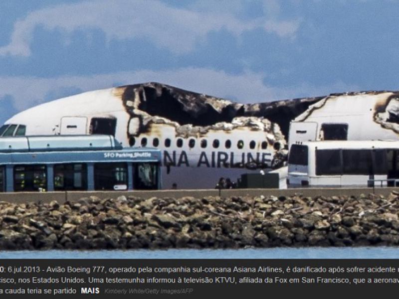 Um avião modelo Boeing 777, operado pela companhia sul-coreana Asiana Airlines, sofreu um acidente ao fazer um pouso no Aeroporto Internacional de San Francisco, nos Estados Unidos