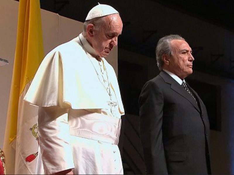 Por fim, assim como fez em praticamente todos os seus discursos, Francisco pediu que os católicos brasileiros rezem por ele: "Este papa precisa da oração de todos vocês. Um abraço para todos. Que Deus lhes abençoe!". (Fonte: UOL)