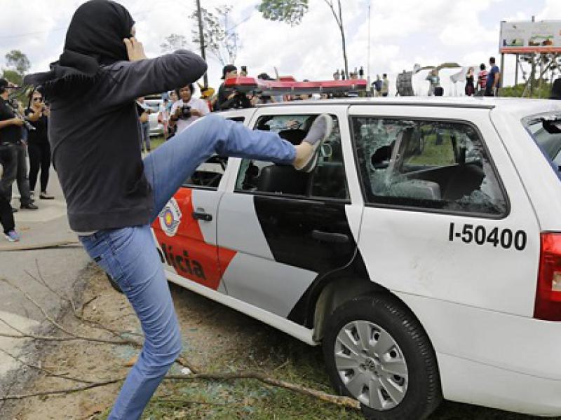A PM deteve seis manifestantes adeptos da tática "black bloc" por dano ao patrimônio público e privado. Um carro da Polícia Militar foi incendiado e outro da Polícia Militar Rodoviária foi danificado. Dois veículos da TV TEM, afiliada da Rede Globo, foram apedrejados e depois incendiados. Os detidos foram levados ao 1º Distrito Policial de São Roque (66 km de São Paulo).