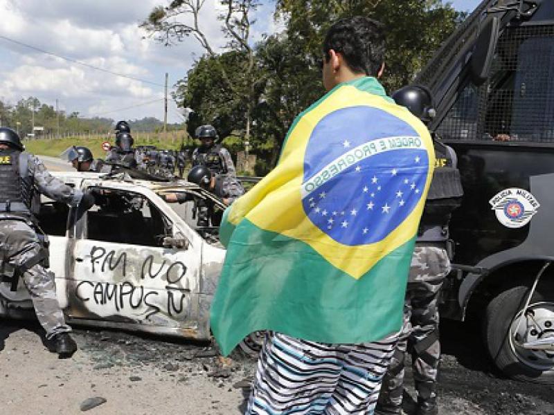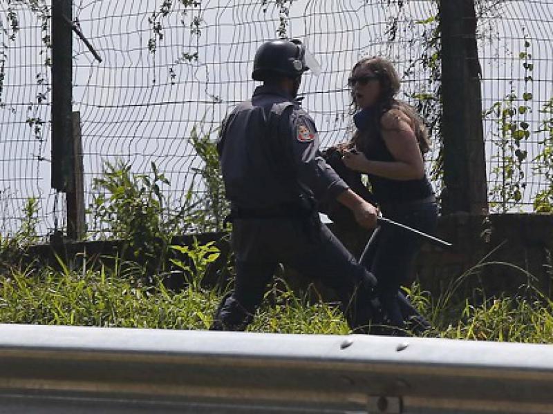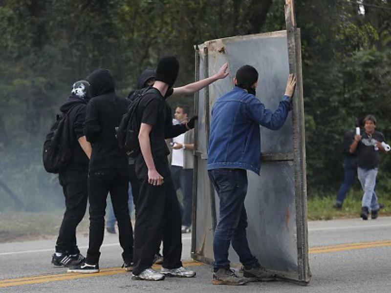 A rodovia foi bloqueada e manifestantes mascarados foram ao local para engrossar um protesto de ativistas, que até então era pacífico.