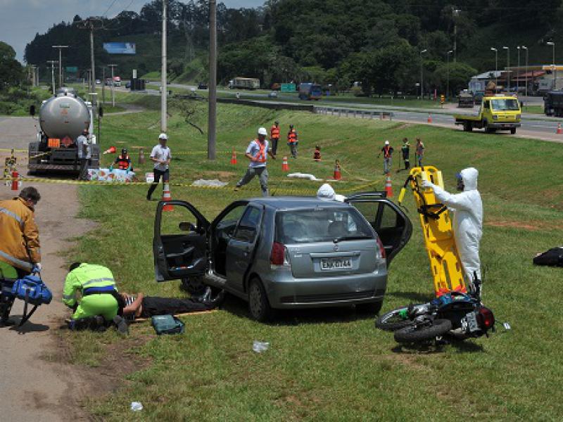 A Concessionária Rota das Bandeiras realizou na manhã desta terça-feira, dia 3 de dezembro, um simulado de acidente com vítimas e derramamento de carga perigosa no km 103 da rodovia Dom Pedro I (SP-065), em Itatiba. A ação, que contou com a participação de aproximadamente 40 pessoas, tem como objetivo avaliar os serviços oferecidos aos usuários do Corredor Dom Pedro neste tipo de ocorrência, possibilitando o aperfeiçoamento dos procedimentos executados pelas equipes envolvidas no resgate.