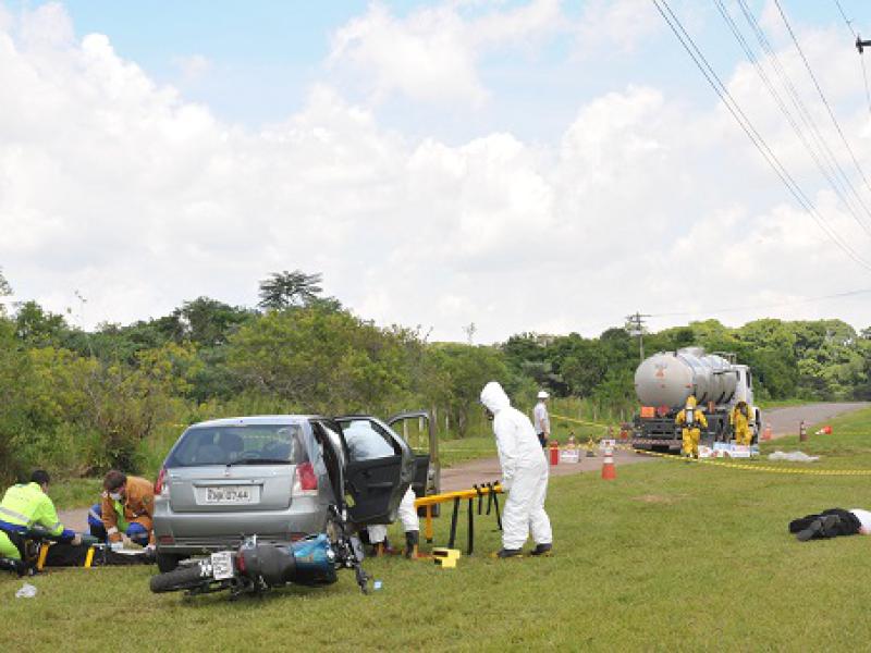 Às 11h10, o Centro de Controle Operacional (CCO) da Rota das Bandeiras foi avisado sobre a ocorrência do acidente. Um carro, um caminhão-tanque carregado com óleo diesel e um motociclista haviam se envolvido em uma colisão, conforme o cenário montado. O condutor da moto estava ferido e, com o vazamento causado no caminhão, o combustível estava vazando.