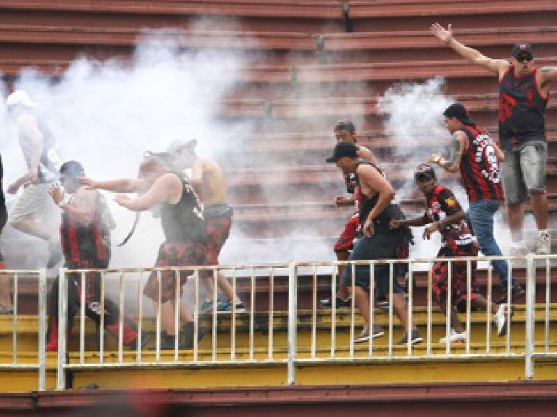 A confusão ocorreu aos 16 minutos do primeiro tempo e fez a partida ser paralisada por mais de uma hora. Filmada pelas emissoras de televisão, a briga envolveu torcedores dos dois lados, em vários pontos do estádio, com imagens fortes de pessoas desacordadas nas arquibancadas. Um helicóptero da Polícia Militar chegou a ser acionado para a retirada de um ferido dentro do gramado.