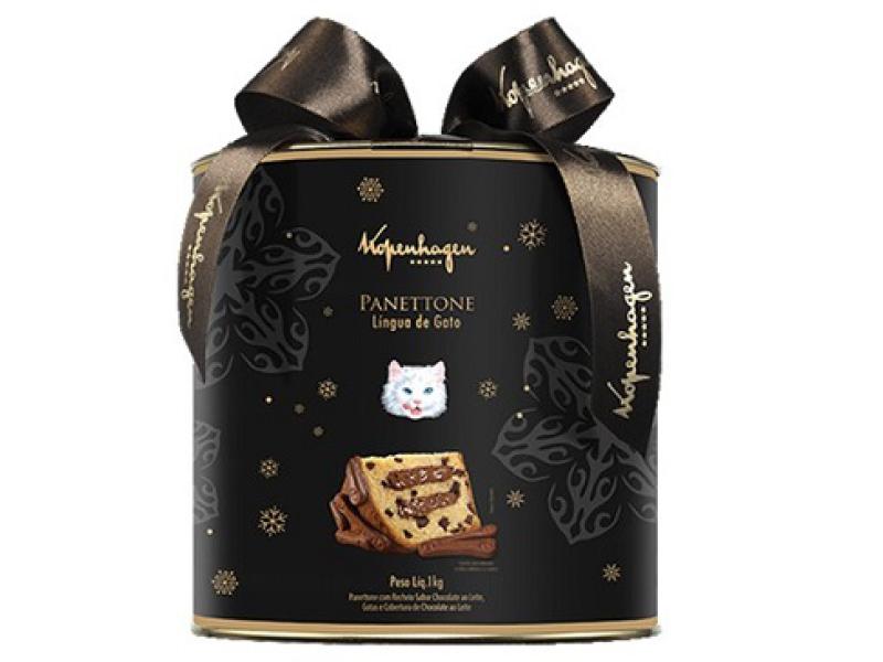 A doceria resolveu juntar a massa do panettone com um recheio exclusivo do creme Língua de Gato, coberto com chocolate ao leite e decorado com o chocolate Línguas de Gato.