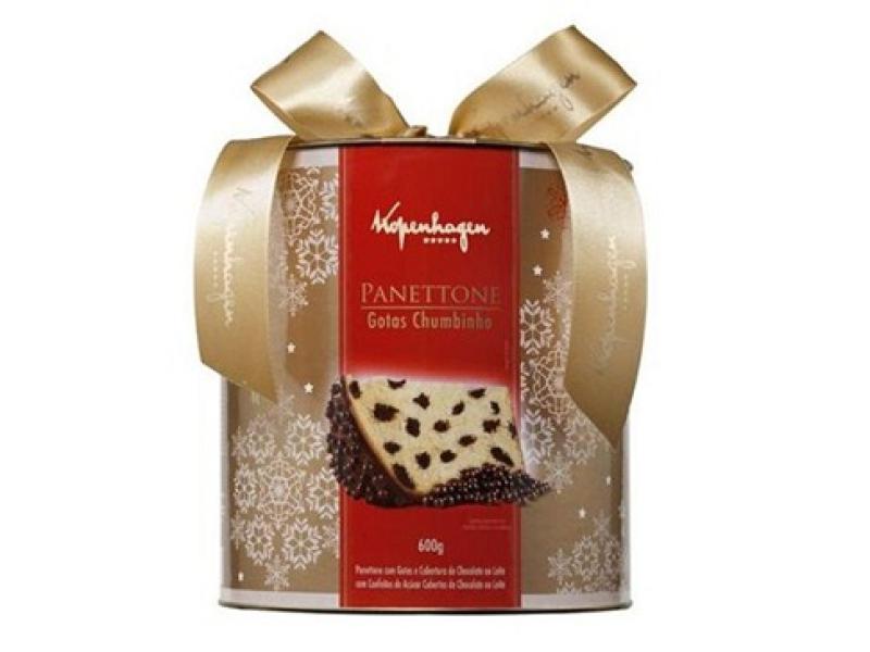 O panettone, além de ser recheado com doce de leite, possui também gotas de chocolate.