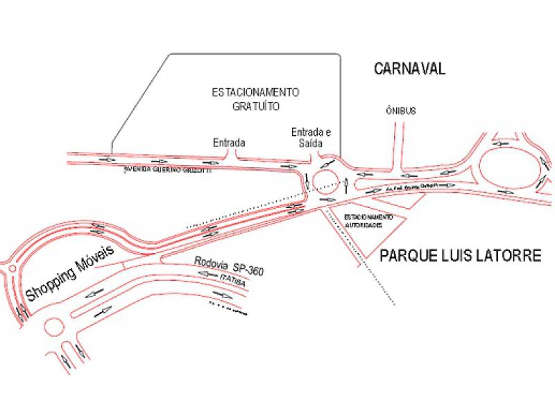 O acesso de veículos ao Parque Luís Latorre será feito pela Avenida Guerino Grisotti, ficando proibido o estacionamento em ambos os lados da via, e a saída será apenas pela Avenida João Carlos de Abreu. Na Avenida Prefeito Erasmo Chrispim o trânsito é normal, com retorno na rotatória em frente ao empreendimento imobiliário existente no local. A entrada do estacionamento pela Avenida Guerino Grisotti e a saída em frente à rotatória da Praça Itatiba-Toro.