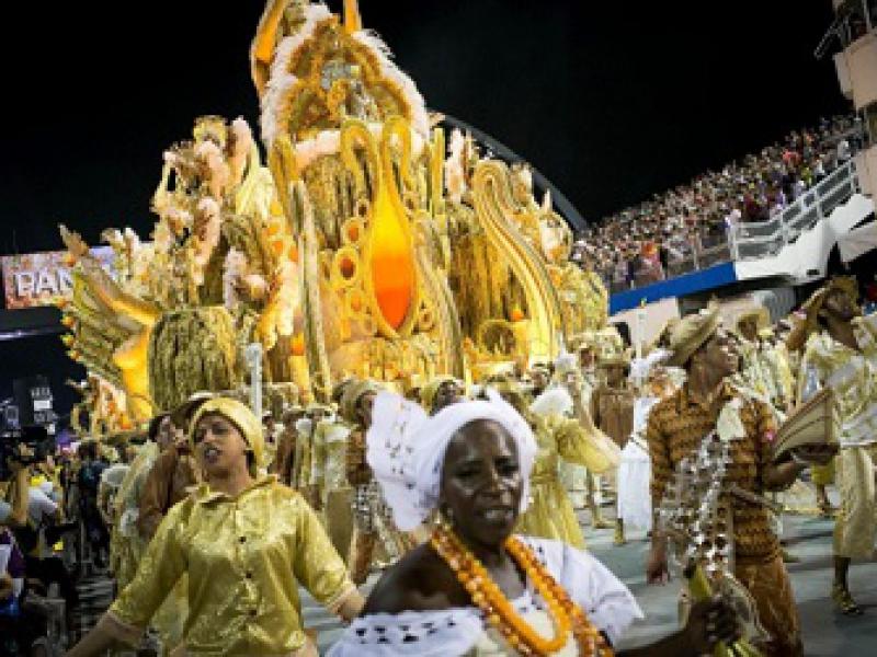 Entre os pontos altos do desfile estiveram a comissão de frente de olhos vendados --em referência à fé cega--, e uma "paradona" da bateria, com coreografia em que os ritmistas ficavam de joelhos.