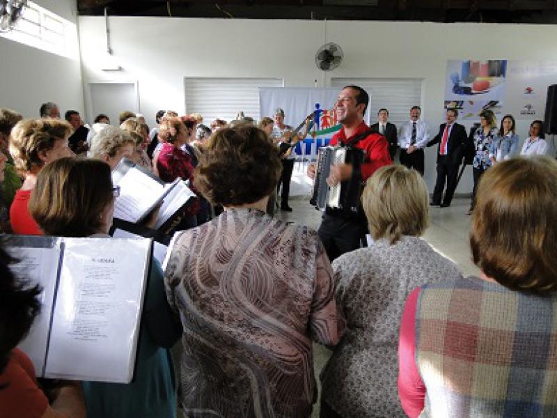 Após a cerimônia de inauguração, o Coral Itavoz, que retornou as atividades para o Centro de Convivência, comemorou a conquista com três lindas músicas italianas. O coral é regido por Jederson Machado e formado por membros da Terceira Idade.