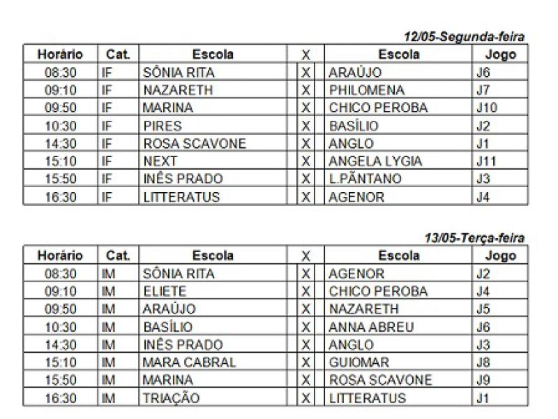 Podem participar alunos da rede municipal e particular do Ensino Fundamental de Itatiba. Serão conferidos troféus de posse definitiva às equipes campeãs e vice-campeãs, assim como medalhas a todos os atletas classificados em 1º e 2º lugares, por categoria e sexo. Cada aluno poderá jogar em apenas uma categoria e modalidade." Confira a programação dos jogos clicando nas fotos logo abaixo: (Fonte: ACPMI)