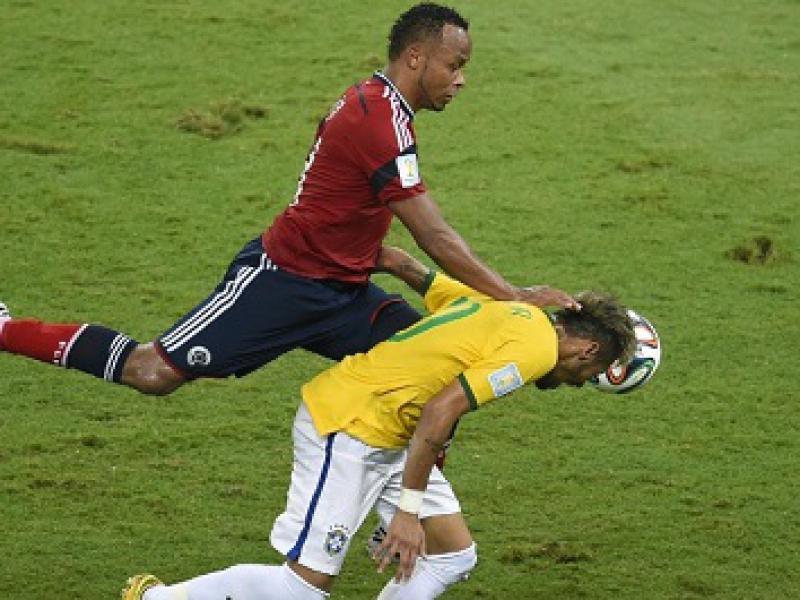 O lance da lesão ocorreu em falta cometida por Zuñiga, defensor colombiano, aos 40 minutos do segundo tempo. Ele acertou o joelho nas costas de Neymar. O atacante foi substituído no minuto seguinte por Henrique, e levado direto para o hospital.