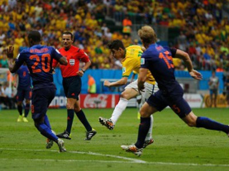 Aos 3 minutos de jogo, no primeiro ataque da Holanda, Van Persie encontrou Robben nas costas da defesa e viu Thiago Silva derrubar o companheiro fora da área. O juiz, equivocadamente, deu pênalti, que o próprio Van Persie bateu e converteu.