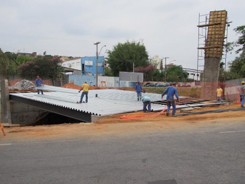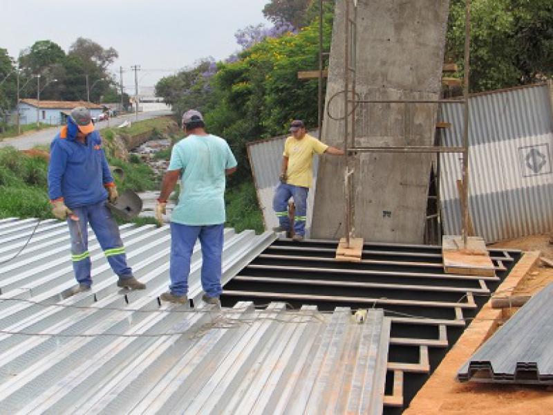 Para viabilizar a sua instalação a Prefeitura remanejou uma rede de galerias pluviais e dos gabiões que ficam na margem do ribeirão. Já foram feitas as colunas de sustentação e o leito da laje, que deverá ser concretada nos próximos 10 dias.